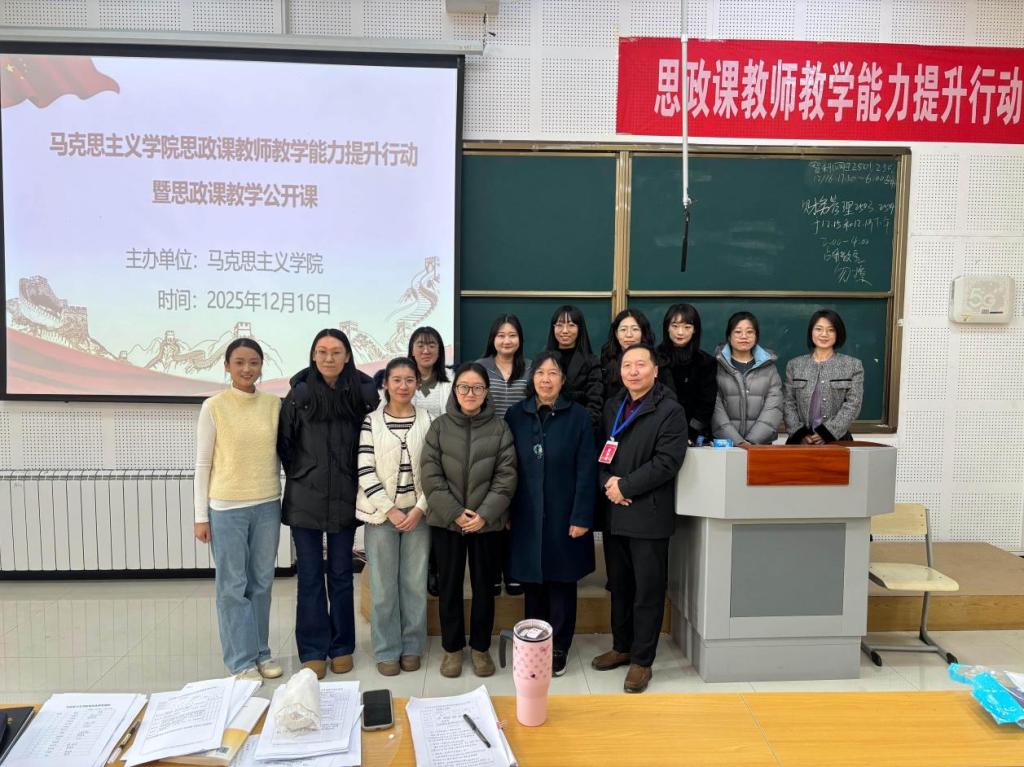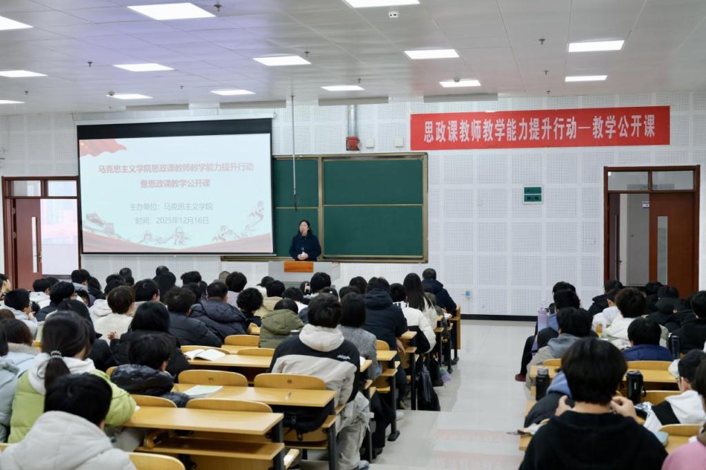 为深入贯彻落实立德树人根本任务,持续深化思政课教学改革创新,切实提升思政课教师专业素养与教学水平,2025年12月16日,我校马克思主义学院组织开展的“思政课教师教学能力提升行动暨教学公开课”活动圆满落幕。本次公开课以“锤炼教学本领、打造优质课堂”为核心,为全体思政课教师搭建了互学互鉴、共同成长的专业平台,对推动思政课提质增效、增强育人实效具有重要意义。