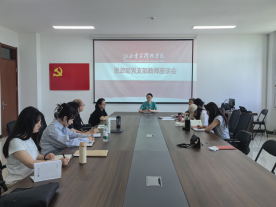 2025年5月21日上午10:30-11:30,思政部党支部在15A-501会议室成功举办了党员教师思想动态座谈会,会议主题为“加强思想动态交流,促进党员队伍建设”,旨在促进支部党员教师之间的交流,增强党员队伍的凝聚力和战斗力,同时了解党员教师在工作和生活中遇到的问题和困难,帮助党员教师解决思想困惑,激发工作热情,促进个人成长和发展。会议由党支部负责人宁怡琳同志主持,思政部党支部全体党员教师参加了此次座谈会。